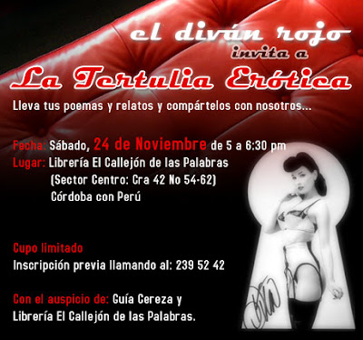 El erotismo en el matrimonio. Tertulia y/o conversatorio en El Diván Rojo. Bermellón, Febrero 16 – 8pm. Medellín